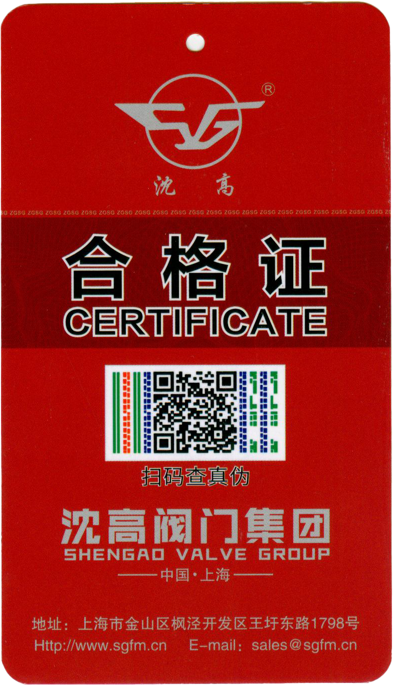 沈高閥門(mén)集團(tuán)有限公司新版防偽合格證